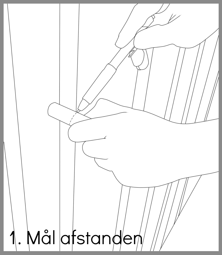 Mål afstanden på den væg hvor dekorationen skal placeres. Se illustration. |