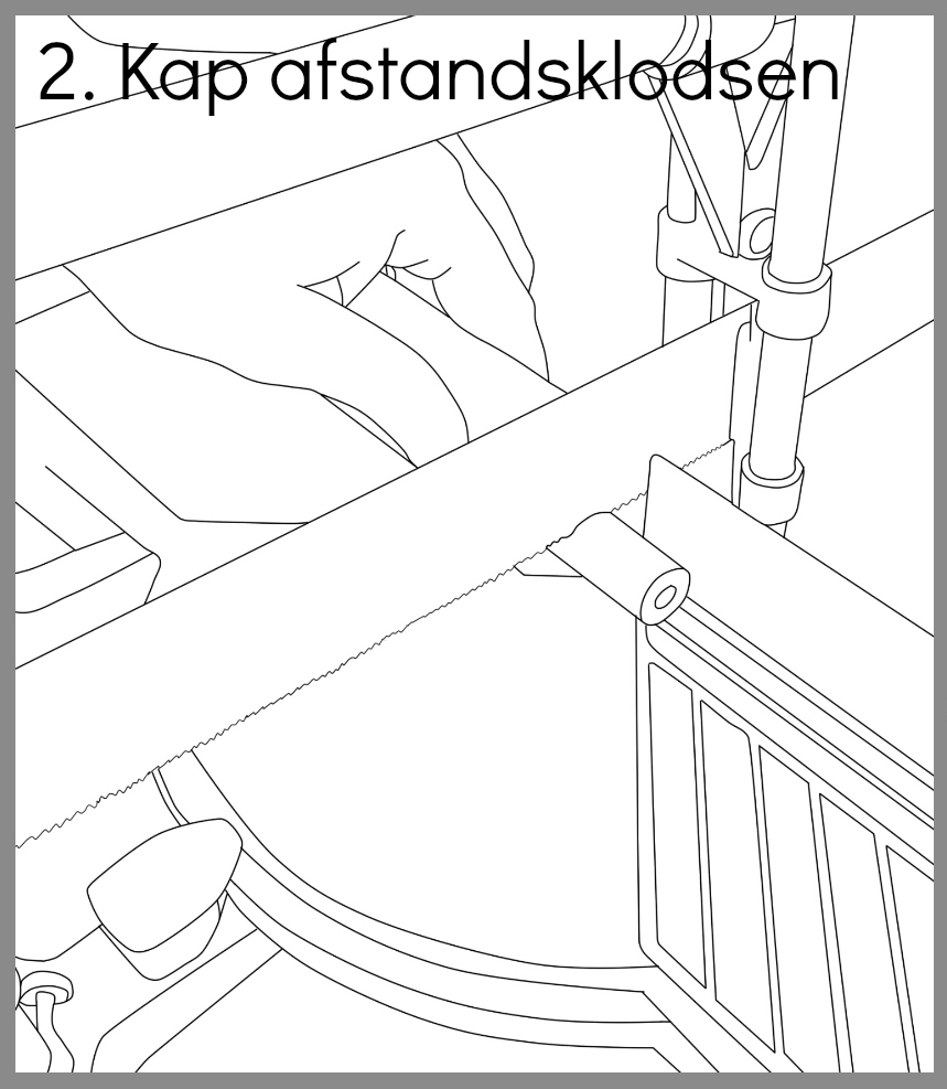 2. Skær afstandsklodsen med en fintandet sav f.eks. en nedstryger. Det er vigtigt at det bliver et lige snit. Anvend eventuelt en skærekasse. |