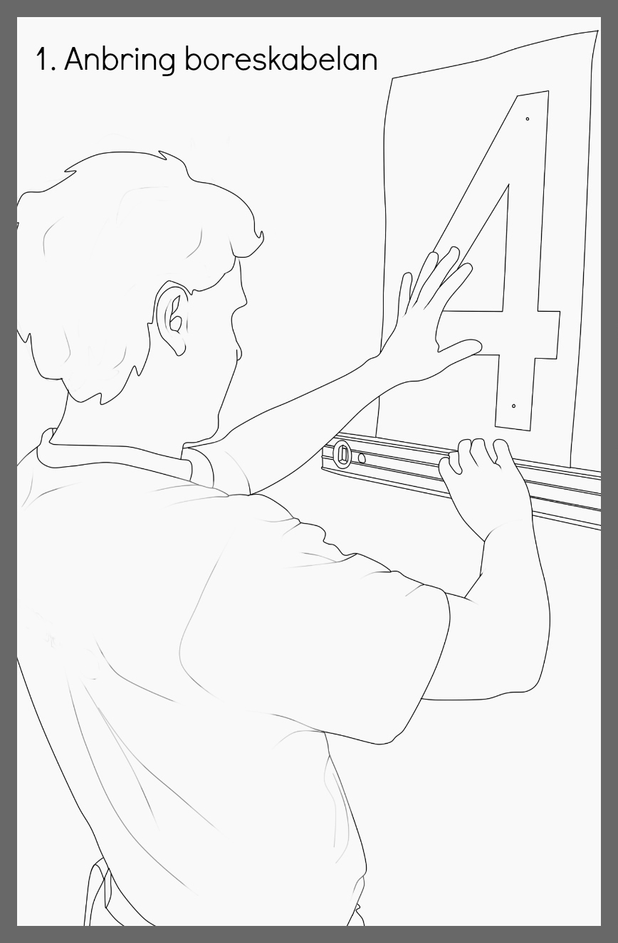 1. Samtlige facadedekorationer kommer med en boreskabelon som du kan montere midlertidigt på facaden ved hjælp af f.eks. tape. Anvend vaterpas for at sikre at placeringen bliver korrekt. Hvis du skal montere et langt ord eller talkombination så kan vi udfærdige en specialfremstillet sammenhængende boreskabelon så du undgår at skulle måle afstand mellem de forskellige symboler, hvilket forenkler monteringen betydeligt. Specialfremstillede boreskabeloner bestilles sammen med dekorationen og findes under "Tilbehør". |